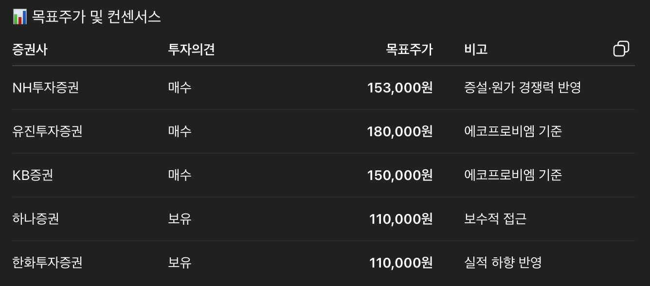컨센서스: 평균 104,167원(최고 180,000 / 최저 60,000). 전체적으로 중립~보수적 톤